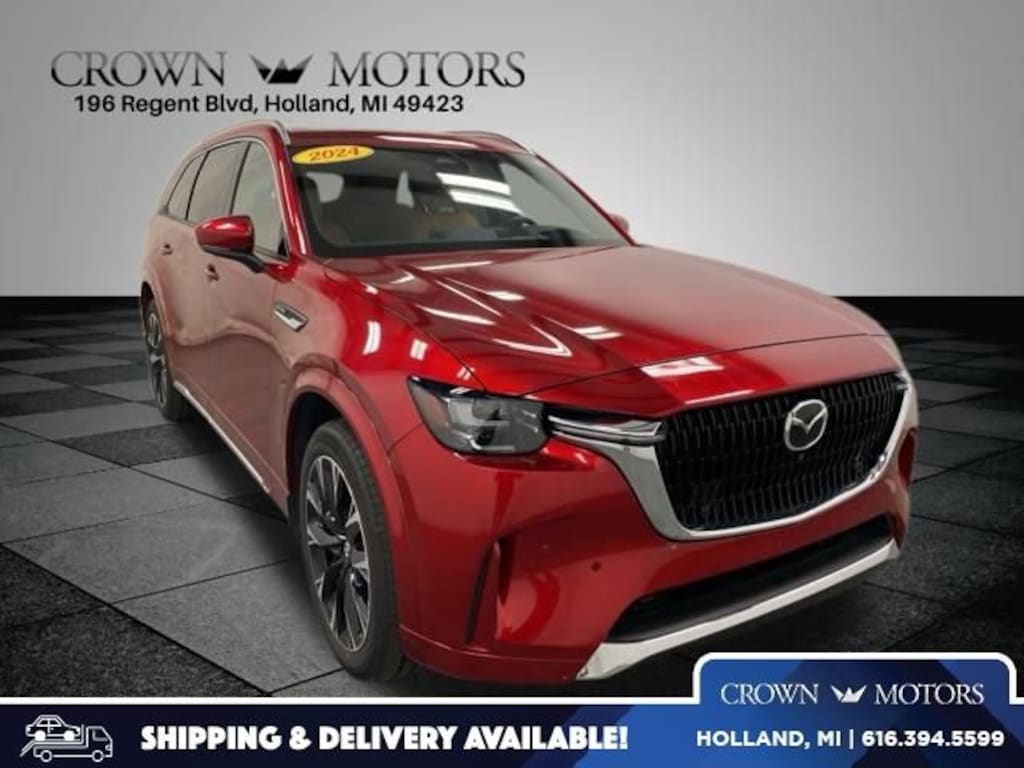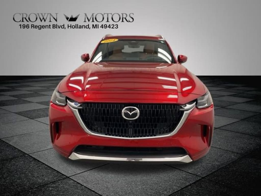 CARFAX One-Owner. Clean CARFAX. Soul Red Crystal 2024 Mazda CX-90 3.3 Turbo S Premium Plus AWD 8-Speed Automatic I6 Turbo **ONE OWNER**, ** LOW MILES**, **SUNROOF / MOONROOF**, **LEATHER**, **ACCIDENT FREE**, **LOCAL TRADE IN**, 12 Speakers, 3rd row seats: bench, 4-Wheel Disc Brakes, ABS brakes, Air Conditioning, Alloy wheels, AM/FM radio: SiriusXM, Auto High-beam Headlights, Auto-dimming door mirrors, Auto-dimming Rear-View mirror, Automatic temperature control, Brake assist, Bumpers: body-color, Carpeted Cargo Mat, Compass, Delay-off headlights, Digital Rear View Mirror w/HomeLink, Driver door bin, Driver vanity mirror, Dual front impact airbags, Dual front side impact airbags, E911 Automatic Emergency Notification, Electronic Stability Control, Emergency communication system: MAZDA CONNECT, Four wheel independent suspension, Front anti-roll bar, Front Bucket Seats, Front Center Armrest w/Storage, Front dual zone A/C, Front reading lights, Fully automatic headlights, Garage door transmitter: HomeLink, Heads-Up Display, Heated door mirrors, Heated front seats, Heated rear seats, Heated steering wheel, Heated/Ventilated Front Bucket Seats, Illuminated entry, Infotainment System Voice Command, Knee airbag, Leather Shift Knob, Leather steering wheel, Low tire pressure warning, Mazda Connected Services, Mazda Navigation System, Memory seat, Nappa Leather Seat Trim w/Quilting, Navigation system: MAZDA CONNECT, Occupant sensing airbag, Outside temperature display, Overhead airbag, Overhead console, Pandora Internet Radio Integration, Panic alarm, Passenger door bin, Passenger vanity mirror, Power door mirrors, Power driver seat, Power Liftgate, Power moonroof, Power passenger seat, Power steering, Power windows, Premium Carpet Floor Mats, Radio Broadcast Data System Program Information, Radio data system, Radio: AM/FM w/Bose Audio Sound System, Rain sensing wipers, Rear air conditioning, Rear anti-roll bar, Rear reading lights, Rear seat center armrest, Rear window defroster, Rear window wiper, Remote keyless entry, Security system, SMS Text Msg Audio Delivery & Reply, Soul Red Crystal Metallic Paint Charge, Speed control, Speed-sensing steering, Split folding rear seat, Spoiler, Steering wheel memory, Steering wheel mounted audio controls, Tachometer, Telescoping steering wheel, Tilt steering wheel, Traction control, Trip computer, Turn signal indicator mirrors, Variably intermittent wipers, Ventilated front seats, Ventilated rear seats, Wheels: 21" x 9.5J Aluminum Alloy.