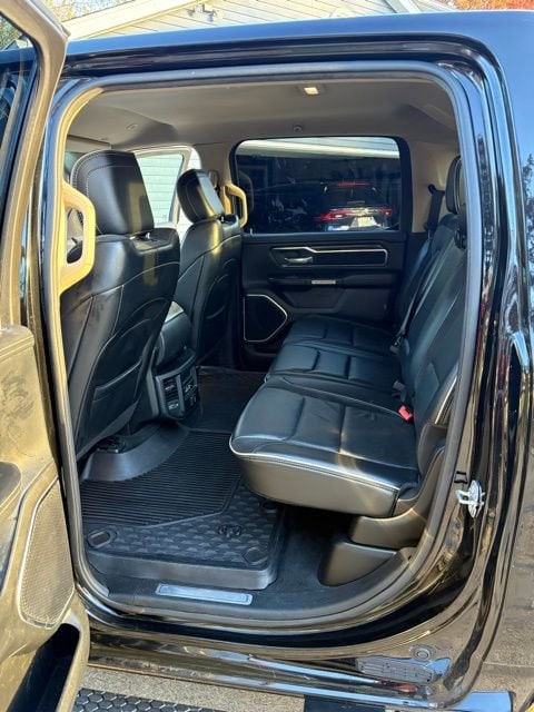 #1 Seat Foam Cushion, 10 Speakers, 3 Rear Seat Head Restraints, 3.21 Rear Axle Ratio, 4 Way Front Headrests, 4-Wheel Disc Brakes, 48V Belt Starter Generator, 8.4" Touchscreen Display, ABS brakes, Adjustable pedals, Air Conditioning, Alloy wheels, AM/FM radio: SiriusXM, Apple CarPlay, Apple CarPlay/Android Auto, Audio memory, Auto-dimming door mirrors, Auto-dimming Rear-View mirror, Automatic temperature control, Brake assist, Bumpers: chrome, Compass, Delay-off headlights, Driver door bin, Driver Seat Memory, Driver vanity mirror, Dual front impact airbags, Dual front side impact airbags, Electronic Stability Control, Front & Rear Rubber Floor Mats, Front anti-roll bar, Front Center Armrest w/Storage, Front dual zone A/C, Front fog lights, Front reading lights, Front Seat Back Map Pockets, Front wheel independent suspension, Fully automatic headlights, Garage door transmitter, Google Android Auto, GPS Antenna Input, Heated door mirrors, Heated Front Seats, Heated front seats, Heated Steering Wheel, Heated steering wheel, Illuminated entry, Integrated Center Stack Radio, Leather steering wheel, Leather Trim 40/20/40 Bench Seat, Low tire pressure warning, Manufacturer's Statement of Origin, Memory seat, Occupant sensing airbag, Outside temperature display, Overhead airbag, Overhead console, Panic alarm, ParkView Rear Back-Up Camera, Passenger door bin, Passenger vanity mirror, Pedal memory, Power 4-Way Driver Lumbar Adjust, Power 4-Way Passenger Lumbar Adjust, Power 8-Way Driver & Passenger Seats, Power door mirrors, Power driver seat, Power passenger seat, Power steering, Power windows, Quick Order Package 25H Laramie, Radio data system, Radio: Uconnect 4 w/8.4" Display, Rear anti-roll bar, Rear seat center armrest, Rear step bumper, Rear window defroster, Remote keyless entry, Security system, SiriusXM Satellite Radio, Speed control, Split folding rear seat, Steering wheel mounted audio controls, Tachometer, Telescoping steering wheel, Tilt steering wheel, Traction control, Trip computer, Turn signal indicator mirrors, Variably intermittent wipers, Ventilated Front Seats, Ventilated front seats, Voltmeter, Wheels: 18" x 8" Aluminum Base Painted.