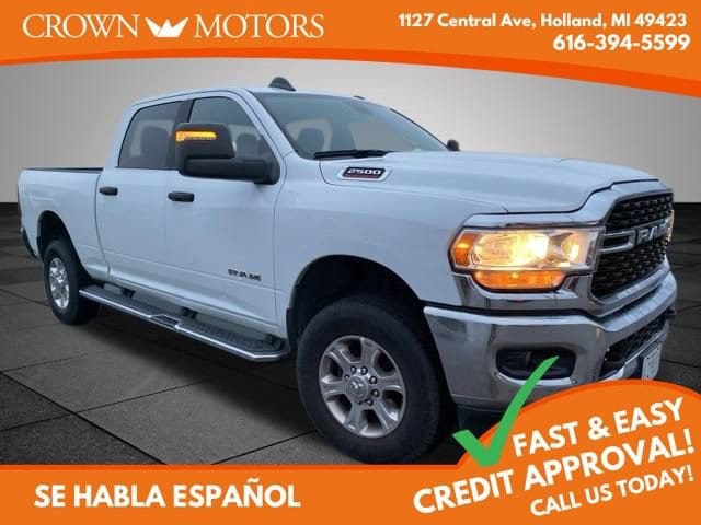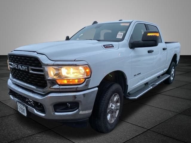 Clean CARFAX. Bright White Clearcoat 2024 Ram 2500 Big Horn 4WD 8-Speed Automatic 6.4L V8 2 Way Rear Headrest Seat, 2nd Row In Floor Storage Bins, 3.73 Axle Ratio, 4 Way Front Headrests, 4-Wheel Disc Brakes, 40/20/40 Split Bench Seat, 4G LTE Wi-Fi Hot Spot, 6 Speakers, 8.4" Touchscreen Display, 9 Alpine Speakers w/Subwoofer, ABS brakes, Active Noise Control System, Air Conditioning, Anti-Spin Differential Rear Axle, Apple CarPlay, Auto Power-Folding Mirrors, Bed Utility Group, Big Horn IP Badge, Black Exterior Mirrors, Bluetooth Handsfree Phone & Audio, Brake assist, Bumpers: chrome, Center Hub, Center Stack Storage Drawer, Chrome Flat Wheel-to-Wheel Side Steps, Cloth 40/20/40 Bench Seat, Compass, Connectivity - US/Canada, Delay-off headlights, Driver door bin, Dual front impact airbags, Dual front side impact airbags, Dual Glove Boxes, Electronic Stability Control, Electronically Controlled Throttle, Emergency communication system: SiriusXM Guardian, Exterior Mirrors Courtesy Lamps, Exterior Mirrors w/Heating Element, Exterior Mirrors w/Supplemental Signals, Foam Bottle Insert (Door Trim Panel), Footwell Courtesy Lamp, For Details, Visit DriveUconnect.com, For More Info, Call 800-643-2112, Forward & Reverse Utility Lights, Front anti-roll bar, Front Armrest w/Cupholders, Front Center Armrest w/Storage, Front Center Seat Cushion Storage, Front Fog Lamps, Front License Plate Bracket, Front reading lights, Front Seat Back Map Pockets, Fully automatic headlights, Global Telematics Box Module (TBM), Glove Box Lamp, Google Android Auto, GPS Antenna Input, Heated door mirrors, Illuminated entry, Integrated Center Stack Radio, Integrated Voice Command w/Bluetooth, Leather Wrapped Steering Wheel, LED Bed Lighting, Level 1 Equipment Group, Locking Lower Glove Box, Low tire pressure warning, Manual Adjust 4-Way Driver Seat, Manual Adjust 4-Way Front Passenger Seat, Manufacturer's Statement of Origin, Mirror Running Lights, MOPAR Deployable Bed Step, MOPAR Spray In Bedliner, Occupant sensing airbag, Outside temperature display, Overhead airbag, Overhead console, Panic alarm, ParkView Rear Back-Up Camera, Passenger door bin, Passenger vanity mirror, Power 2-Way Driver Lumbar Adjust, Power Adjust 8-Way Driver Seat, Power Adjust Mirrors, Power Adjustable Convex Aux Mirrors, Power door mirrors, Power Heated Fold Telescope Mirrors, Power steering, Power Telescoping Mirrors, Power windows, Premium Cloth 40/20/40 Bench Seat (DISC), Protection Group, Quick Order Package 2GZ Big Horn, Radio data system, Radio: Uconnect 3 w/5" Display, Radio: Uconnect 5 W w/8.4" Display, Rear 60/40 Folding Seat, Rear anti-roll bar, Rear Dome w/On/Off Switch Lamp, Rear Folding Seat, Rear seat center armrest, Rear step bumper, Remote keyless entry, Remote USB Port - Charge Only, Selectable Tire Fill Alert, SiriusXM Radio Service, SiriusXM Satellite Radio, Speed control, Steering Wheel Mounted Audio Controls, Storage Tray, Tachometer, Tilt steering wheel, Tip Start, Tow Hooks, Traction control, Trip computer, Turn signal indicator mirrors, Variably intermittent wipers, Voltmeter, Wheels: 18" x 8.0" Polished Aluminum, Wheels: 18" x 8.0" Steel Chrome Clad.