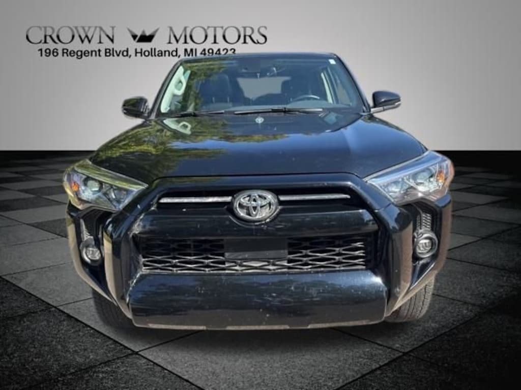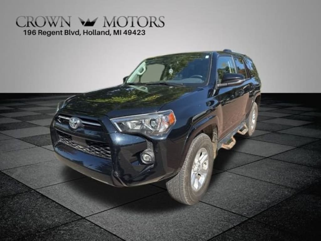 CARFAX One-Owner. Clean CARFAX. Midnight Black 2023 Toyota 4Runner SR5 Premium 4WD 5-Speed with ECT 4.0L V6 DOHC 24V **ONE OWNER**, ** LOW MILES**, **LEATHER**, **ACCIDENT FREE**, **LOCAL TRADE IN**, 4WD, Graphite Artificial Leather, 17" 6-Spoke Alloy Wheels, 3.727 Axle Ratio, 4-Wheel Disc Brakes, 8 Speakers, ABS brakes, Air Conditioning, All-Weather Floor Liners/Cargo Tray (PPO) (TMS), Alloy wheels, AM/FM radio: SiriusXM, Anti-whiplash front head restraints, Apple CarPlay/Android Auto, Auto High-beam Headlights, Auto-dimming Rear-View mirror, Brake assist, Bumpers: body-color, Compass, Driver door bin, Driver vanity mirror, Dual front impact airbags, Dual front side impact airbags, Electronic Stability Control, Emergency communication system: Safety Connect (1-year trial), Exterior Parking Camera Rear, Front anti-roll bar, Front Bucket Seats, Front Center Armrest, Front fog lights, Front reading lights, Front wheel independent suspension, Garage Door Opener, Garage door transmitter: HomeLink, Heated door mirrors, Heated Front Bucket Seats, Heated front seats, Heated Outside Rear-View Mirrors, Illuminated entry, Knee airbag, Leather Shift Knob, Leather steering wheel, Low tire pressure warning, Moonroof Package, Moonroof w/Tilt Up & Slide, Navigation System, Occupant sensing airbag, Outside temperature display, Overhead airbag, Overhead console, Panic alarm, Passenger door bin, Passenger vanity mirror, Power door mirrors, Power driver seat, Power passenger seat, Power steering, Power windows, Radio: Premium Audio w/Dynamic Navigation, Rear anti-roll bar, Rear seat center armrest, Rear window defroster, Rear window wiper, Remote keyless entry, Security system, SofTex Seat Trim, SofTex-Trimmed 50/50 Split Fold-Flat 3rd Row, Speed control, Speed-sensing steering, Split folding rear seat, Spoiler, SR5 Premium Package, Steering wheel mounted audio controls, Tachometer, Telescoping steering wheel, Tilt steering wheel, Traction control, Trip computer, Trunk Carpet, Turn signal indicator mirrors, Variably intermittent wipers, 4WD, Graphite Artificial Leather.