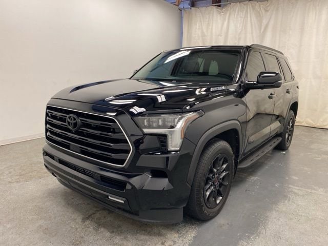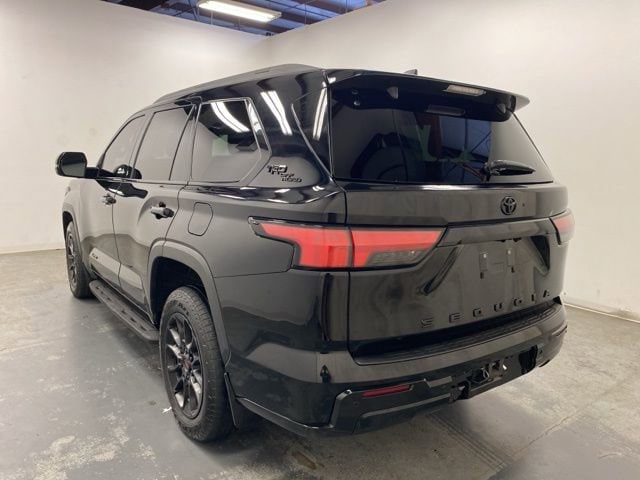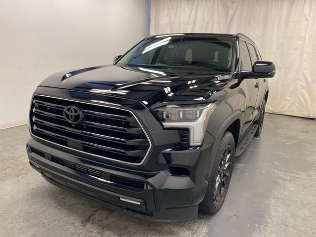 Midnight Black 2024 Toyota Sequoia Limited 4WD 10-Speed Automatic V6 Hybrid **ONE OWNER**, **LOCAL TRADE IN**, Sequoia Limited, V6 Hybrid, 10-Speed Automatic, 4WD, Cast Aluminum Step & Step Cover, Multi-Terrain Back Monitor, Tow Technology Package, TRD Off-Road Package, Wheels: 20" Black TRD Alloy, 3.31 Axle Ratio, 3rd row seats: split-bench, 4-Wheel Disc Brakes, 8 Speakers, ABS brakes, Air Conditioning, Alloy wheels, AM/FM radio: SiriusXM, Anti-whiplash front head restraints, Apple CarPlay/Android Auto, Auto High-beam Headlights, Auto-dimming door mirrors, Auto-dimming Rear-View mirror, Automatic temperature control, Brake assist, Bumpers: body-color, Delay-off headlights, Driver door bin, Driver vanity mirror, Dual front impact airbags, Dual front side impact airbags, Electronic Stability Control, Emergency communication system: Safety Connect (10-year trial), Exterior Parking Camera Rear, Front anti-roll bar, Front Bucket Seats, Front Center Armrest w/Storage, Front dual zone A/C, Front fog lights, Front reading lights, Front wheel independent suspension, Fully automatic headlights, Garage door transmitter: HomeLink, Headlight cleaning, Heated & Ventilated Front Seats, Heated door mirrors, Heated front seats, Heated steering wheel, Illuminated entry, Knee airbag, Leather Shift Knob, Leather steering wheel, Low tire pressure warning, Memory seat, Navigation system: Drive Connect (1 year trial) includes Cloud Navigation with real time traffic and Google POI, Occupant sensing airbag, Outside temperature display, Overhead airbag, Overhead console, Panic alarm, Passenger door bin, Passenger vanity mirror, Power door mirrors, Power driver seat, Power Liftgate, Power moonroof, Power passenger seat, Power steering, Power windows, Radio: Toyota Multimedia w/14" Display, Rear air conditioning, Rear reading lights, Rear seat center armrest, Rear window defroster, Rear window wiper, Reclining 3rd row seat, Remote keyless entry, Security system, SofTex Seat Trim, Speed control, Speed-sensing steering, Split folding rear seat, Spoiler, Steering wheel mounted audio controls, Tachometer, Telescoping steering wheel, Tilt steering wheel, Traction control, Trip computer, Turn signal indicator mirrors, Variably intermittent wipers, Ventilated front seats, Voltmeter, Wheels: 20" Machined-Finish Alloy, Sequoia Limited, V6 Hybrid, 10-Speed Automatic, 4WD, Cast Aluminum Step & Step Cover, Multi-Terrain Back Monitor, Tow Technology Package, TRD Off-Road Package, Wheels: 20" Black TRD Alloy.