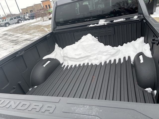 Exterior highlights include body-color bumpers, heated power side mirrors, and 18-inch alloy wheels that give the Tundra a bold and distinctive presence on the road. The rear step bumper and variable intermittent wipers add further convenience and functionality.