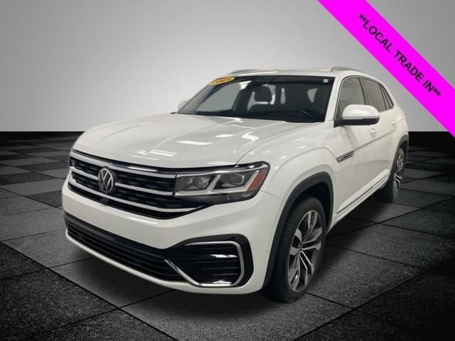 CARFAX One-Owner. Pure White 2021 Volkswagen Atlas Cross Sport 3.6L V6 SEL Premium R-Line AWD 8-Speed Automatic with Tiptronic 3.6L VR6 **ACCIDENT FREE**, **LOCAL TRADE IN**, AWD, 12 Speakers, 3.60 Axle Ratio, 4-Wheel Disc Brakes, ABS brakes, Air Conditioning, Alloy wheels, AM/FM radio: SiriusXM with 360L, Auto High-beam Headlights, Auto-dimming Rear-View mirror, Automatic temperature control, Base Carrier Bars Roof Rack (Set of 2), Brake assist, Bumpers: body-color, Compass, Delay-off headlights, Driver door bin, Driver vanity mirror, Dual front impact airbags, Dual front side impact airbags, Electronic Stability Control, Emergency communication system: VW Car-Net services (capabilities require enrollment or subscription), First Aid Kit, Four wheel independent suspension, Frameless Self-Dimming Rearview Mirror, Front anti-roll bar, Front Bucket Seats, Front Center Armrest, Front dual zone A/C, Front fog lights, Front reading lights, Fully automatic headlights, Heated & Ventilated Front Comfort Sport Seats, Heated door mirrors, Heated front seats, Heated rear seats, Heated steering wheel, Heavy Duty Trunk Liner w/VW CarGo Blocks, Illuminated entry, Leather Shift Knob, Low tire pressure warning, Memory seat, Navigation System, Occupant sensing airbag, Outside temperature display, Overhead airbag, Overhead console, Panic alarm, Passenger door bin, Passenger vanity mirror, Perforated Vienna Leather Seating Surfaces, Power door mirrors, Power driver seat, Power Liftgate, Power moonroof, Power passenger seat, Power steering, Power windows, Privacy Cover, Radio data system, Radio: MIB3 Discover Media w/8" Touchscreen Navigation, Rain sensing wipers, Rear anti-roll bar, Rear reading lights, Rear seat center armrest, Rear window defroster, Rear window wiper, Remote keyless entry, Roadside Assistance Kit, Roof rack: rails only, Rubber Mats Kit, Security system, Speed control, Speed-sensing steering, Split folding rear seat, Spoiler, Sport steering wheel, Standard Suspension, Steering wheel mounted audio controls, Tachometer, Telescoping steering wheel, Tilt steering wheel, Traction control, Trailer Hitch Extras, Trip computer, Turn signal indicator mirrors, Variably intermittent wipers, Ventilated front seats, VW Care, Wheel Splash Guards (Set of 4), Wheels: 21" Two-Tone Machined Alloy, AWD.